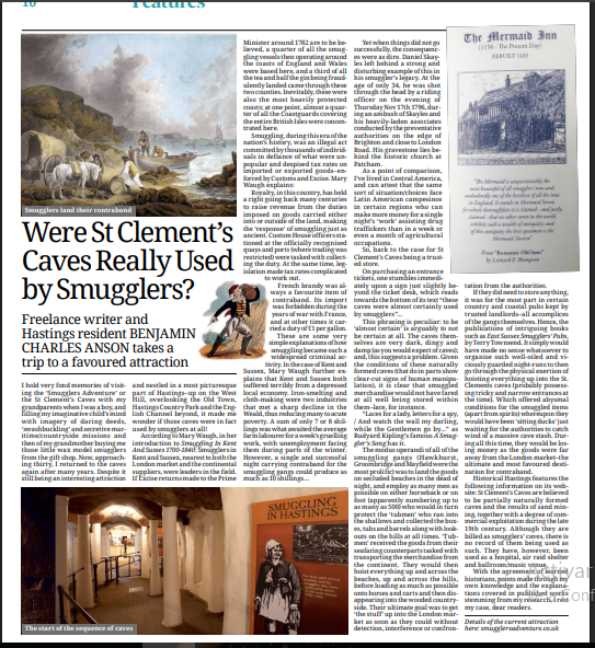 Dear readers of The History Scrutineer, I would like to share a history feature of mine published in what was one’s local newspaper. This concerned the scrutinizing of a case involving whether or not a set of caves were used by the area’s notorious smuggling gangs of the 18th/19th centuries along Southeast England’s coasts. The links are provided down below as is a screenshot of the article in question.