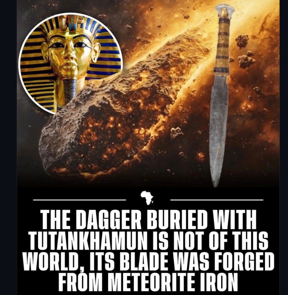 In the year 1922, November 4th, when King Tutankhamun’s tomb was excitedly and perhaps even avariciously wrenched open under the eager commands of British archeologist Howard Carter – sponsored by his patron Lord Carnarvon, a dagger was found within the priceless treasure trove, which after careful inspection further down the line, produced a startling result.